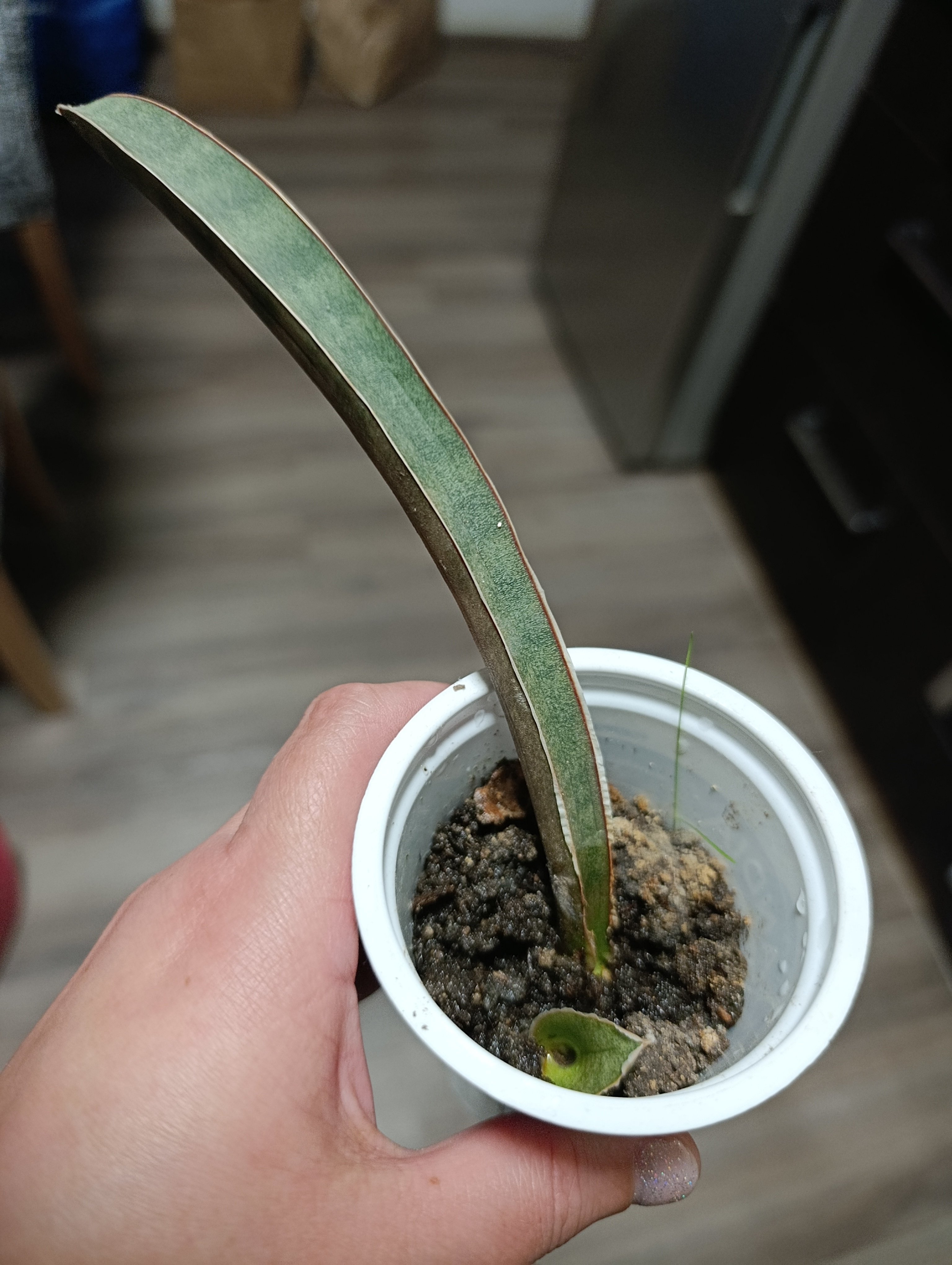 1. a 2. foto mateřská rostlina, 3. foto zakořeněná sazenička, roste jí další list, osobně v Táboře nebo Zásilkovnou, PPL