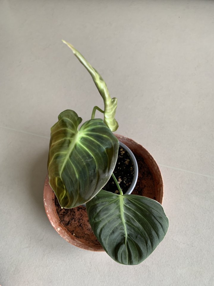Nádherný sameťáček s velkými listy vypěstovaný z řízku mé mateřské rostliny. Zvyklý na běžné pokojové podmínky - roste rychle! Zasazený v květináči o průměru 9 cm v mém substrátu na aroidy.