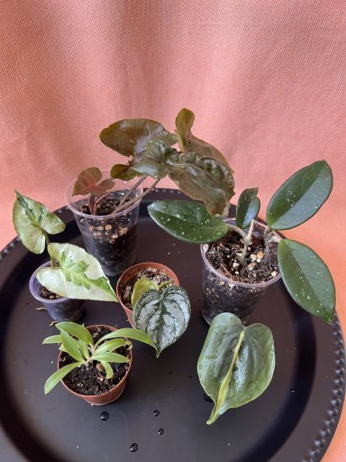 Různorodější set 6 rostlin: Syngonium podpohyllum 'Maria Allusion' (nádherné tmavé syngo, nové listy červené, umírající pak růžové), Syngonium podophyllum 'Three Kings' (krásně zbarvené panašované syngo, tohle je prcek vypěstovaný z kolínka), pak jsou tam dva drobnolisté philodendrony se srdčitými listy - brandtianum (stříbrná kresba na listu) a hederaceum 'Cream Splash' (vzácnější verze zbarvení s krémovou na listech), předposlední jsou semenáčky Chlorophytum orchidastrum 'Green Orange' (moc zajímavá rostlinka, tyto jsou mnou vypěstované ze semínek z mé mateční rostliny), poslední rostlinka je nenáročná hoya carnosa (foto květu přidám do galerie). Bude to větší balíček, proto neposílám do boxů! (Z-BOXů, Alzaboxů atd.), vyberte si tedy prosím normální pobočku k doručení (Zásilkovny či Balíkovny). ________________________________________________ !!Rostlinky z vyhraných aukcí je nutné objednat do 48h (jinak je dle pravidel webu vystavím znovu). Termín odeslání zaplacených rostlinek: 24.-25.7.2024 (lze individuálně přizpůsobit Vašim potřebám). Pokud nejste členem rostlinného klubu a chcete se vyhnout poplatku za bezpečnou platbu, můžete si zadat osobní předání a na doručení a platbě se domluvíme ve zprávě (pište mi to rovnou do objednávky).