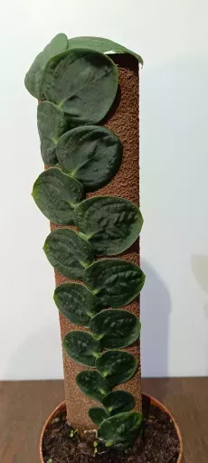 Vzácná hemi-epifytická pomalu rostoucí liána, která v dospělosti (s oporou a dostatkem světla) mění tvar listů / Teplota při pěstování by neměla klesnout v noci pod 18C a ve dne pod 20C / Výška včetně květináče cca 45 cm