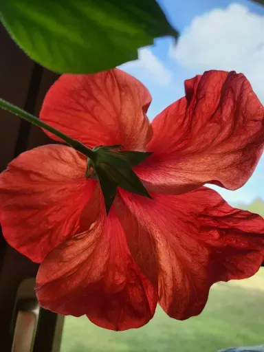 Ibišek červený, okraje květů lehce do oranžova