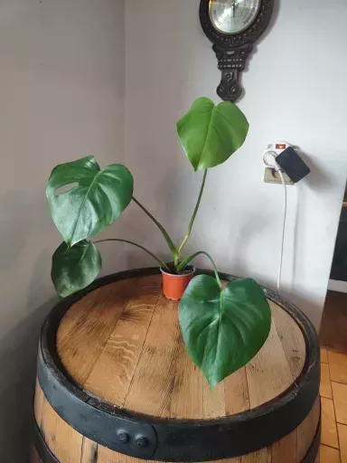 Mladá, plně zakořeněná monstera z řízku. Nejmladší list vyrostl po zakořenění. Neprodělala žádné škůdce, v kvalitním substrátu pro monstery.