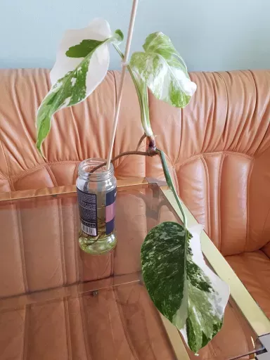 Monstera albo variegata - bohatě kořenící řízek již s aktivním růstovým bodem