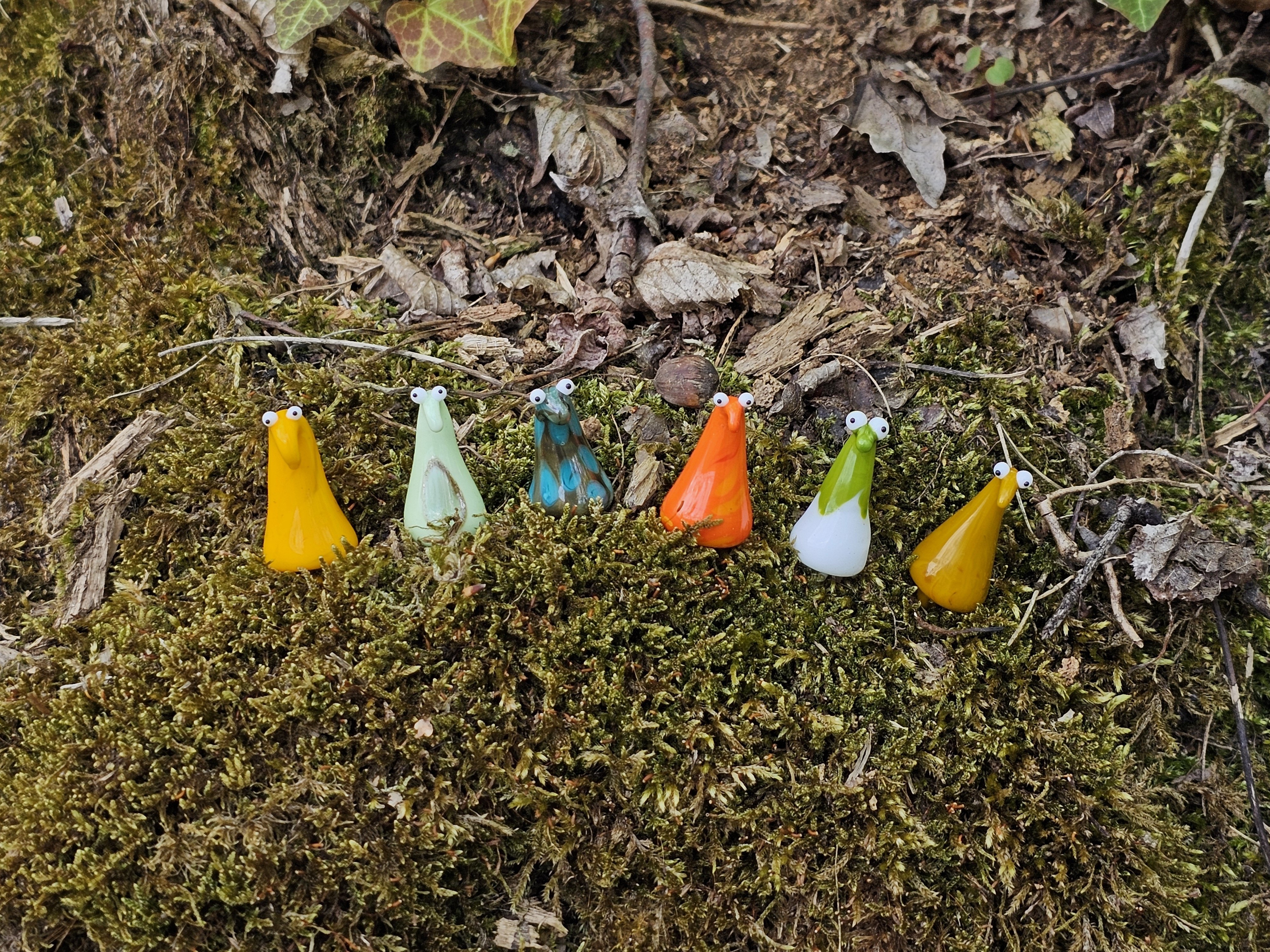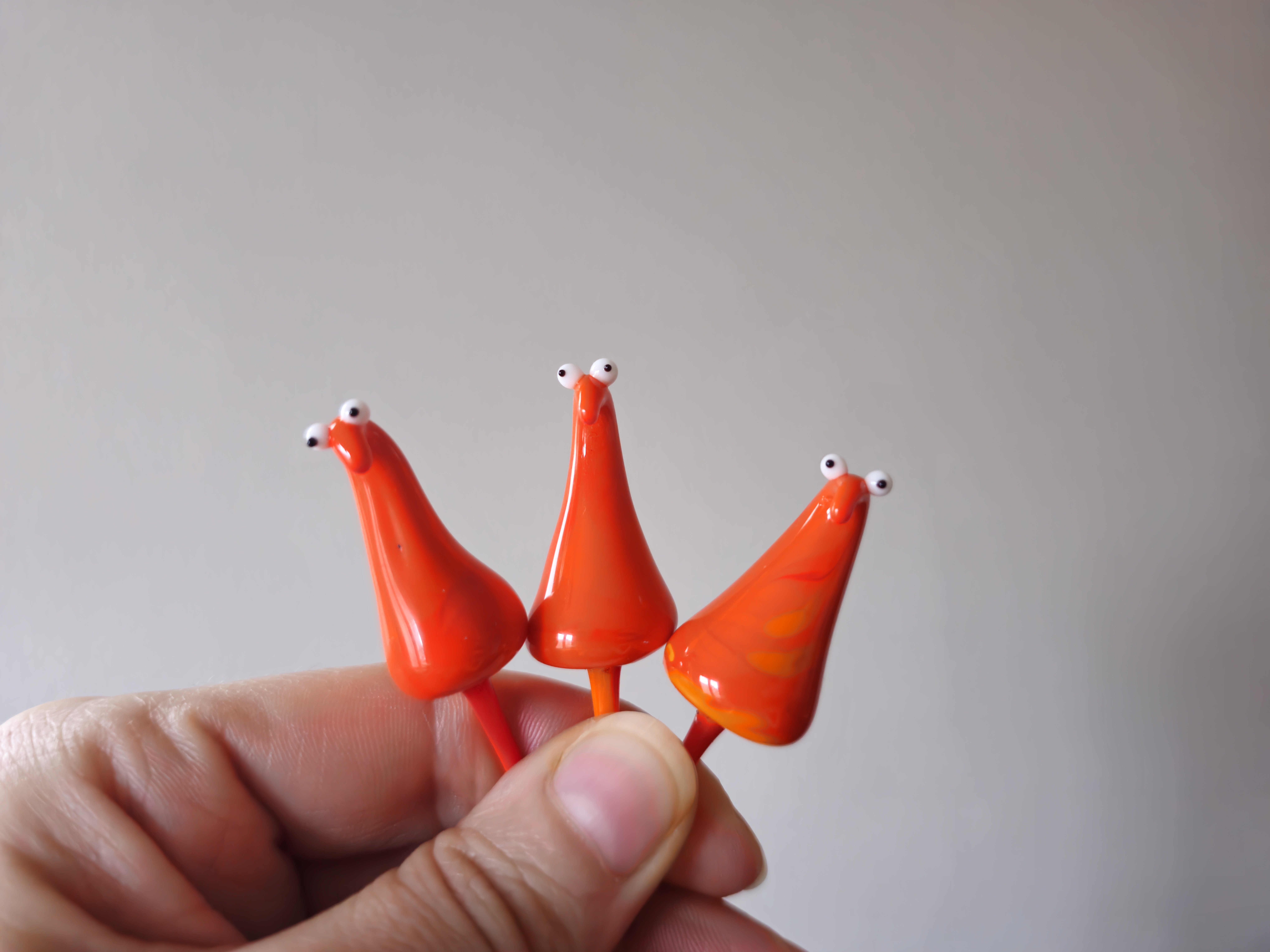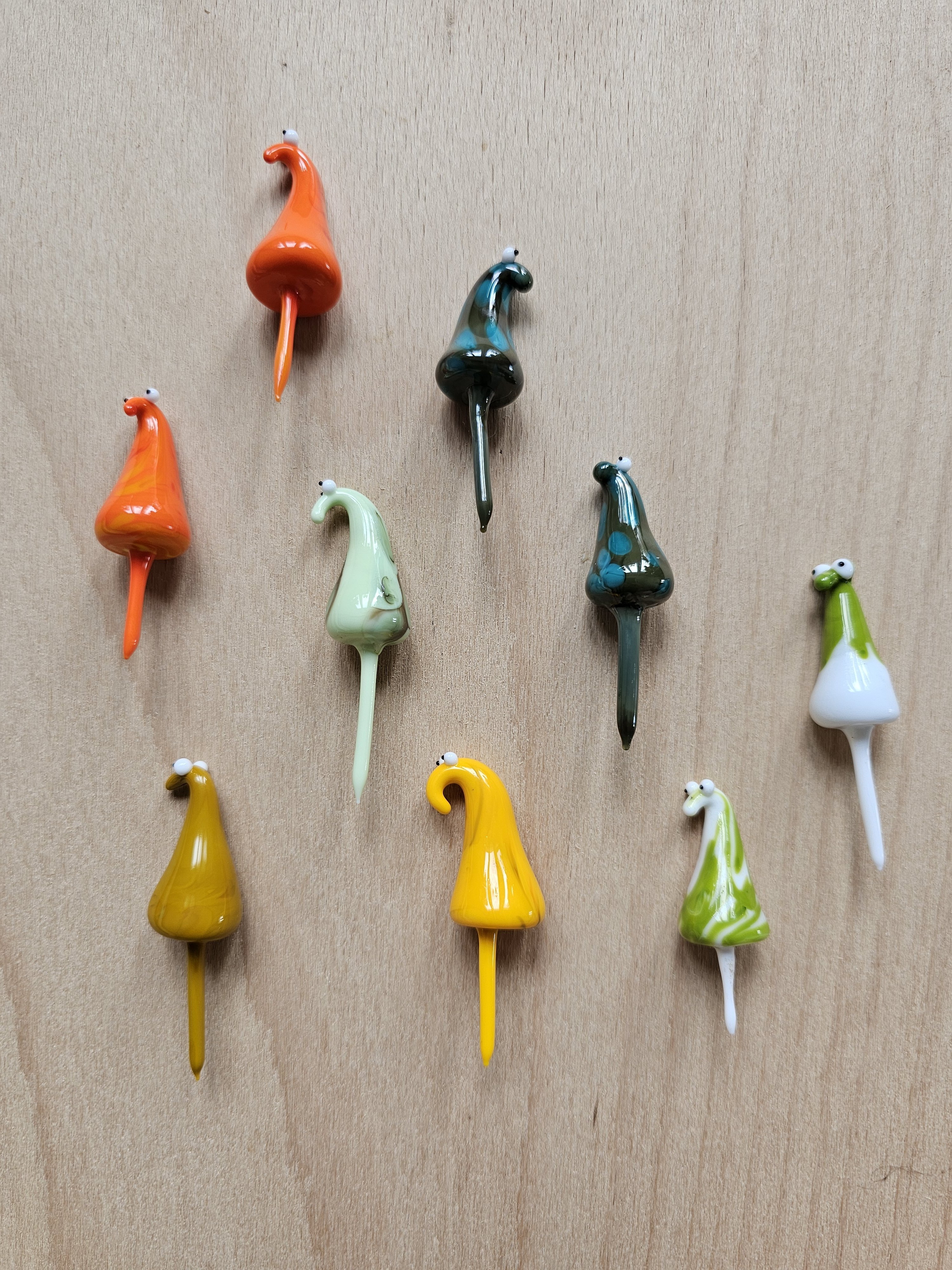 Skleněná figurka k zapíchnutí do květináče nebo kokedamy, více barev na výběr. Přibližná velikost cca 6x2 cm