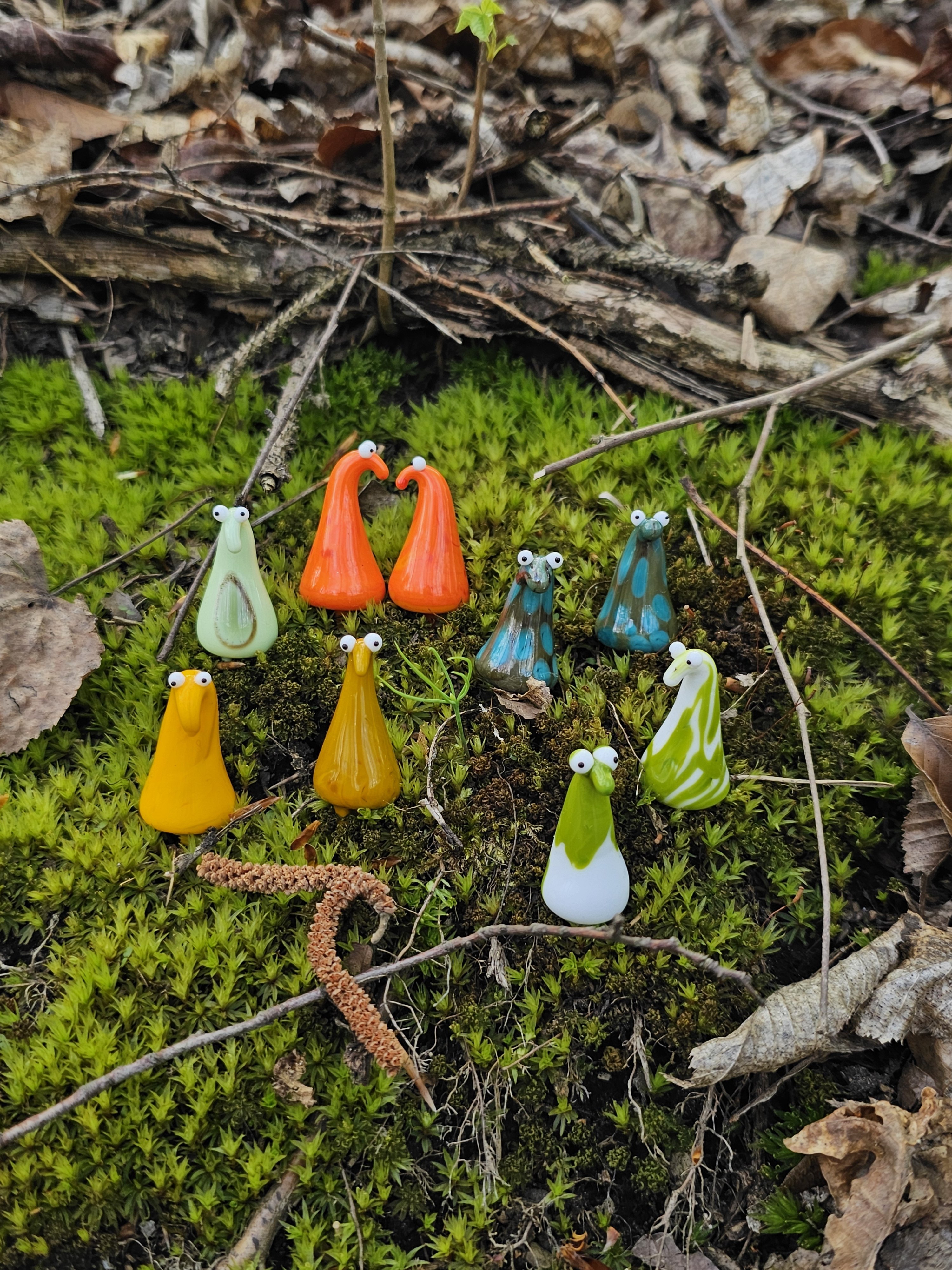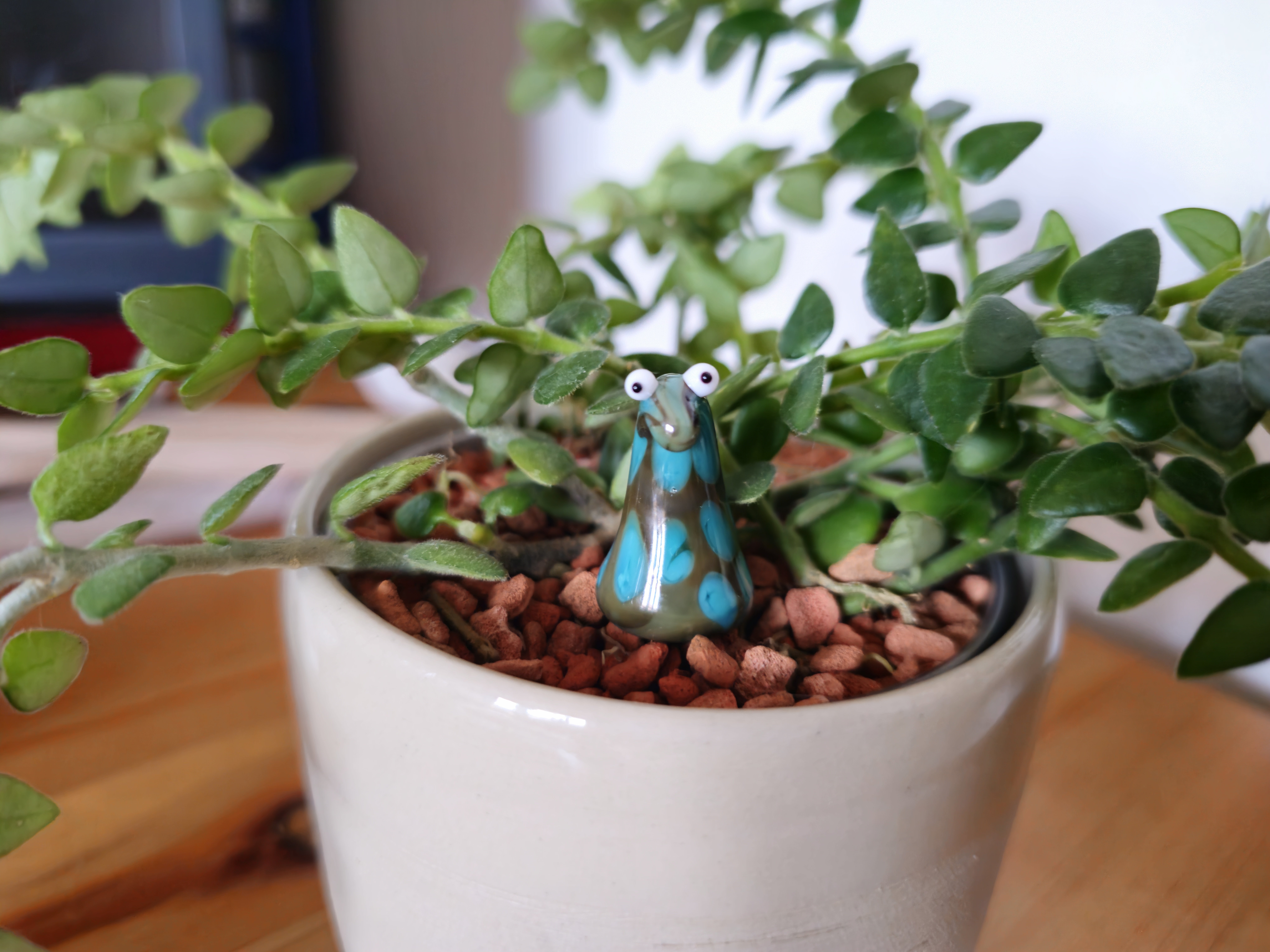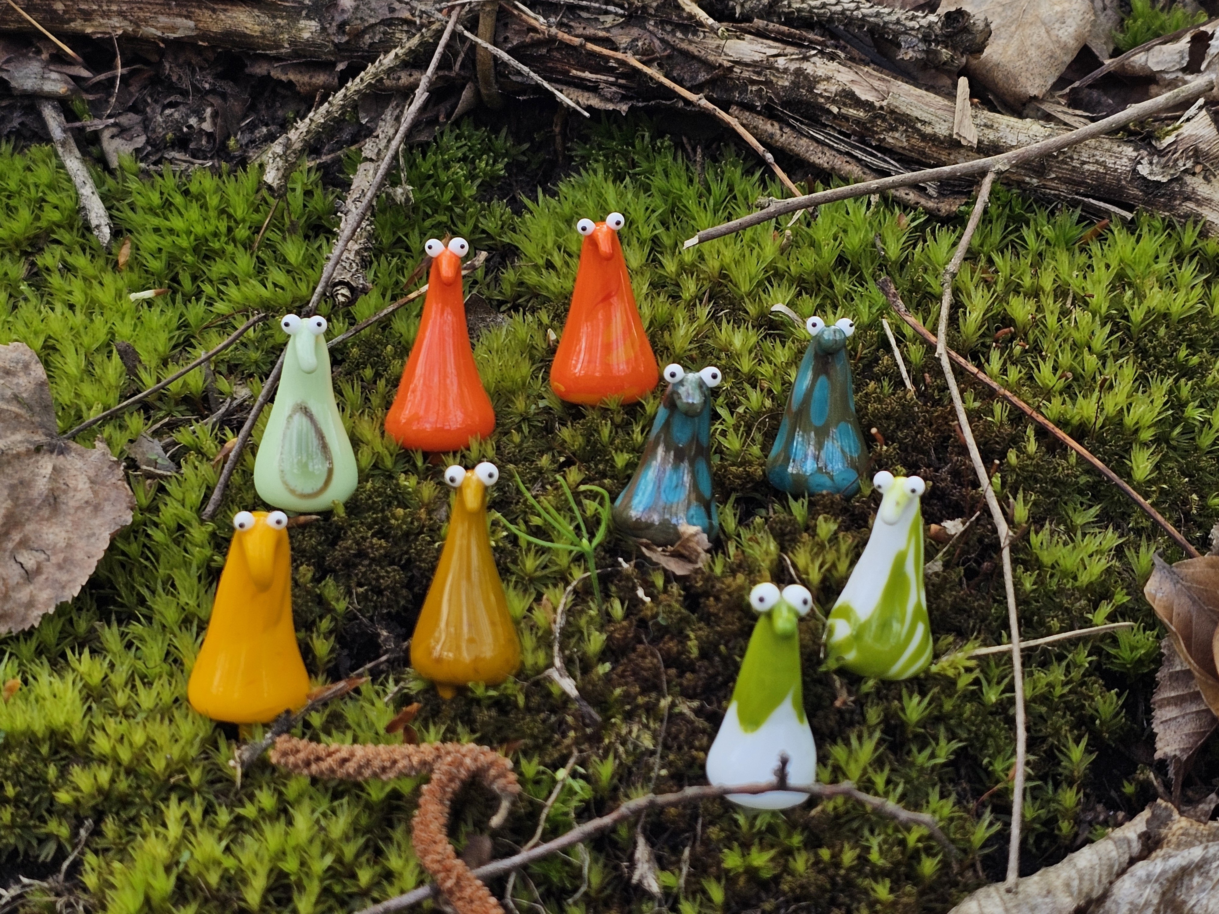 Skleněná figurka k zapíchnutí do květináče nebo kokedamy, více barev na výběr. Přibližná velikost cca 6x2 cm