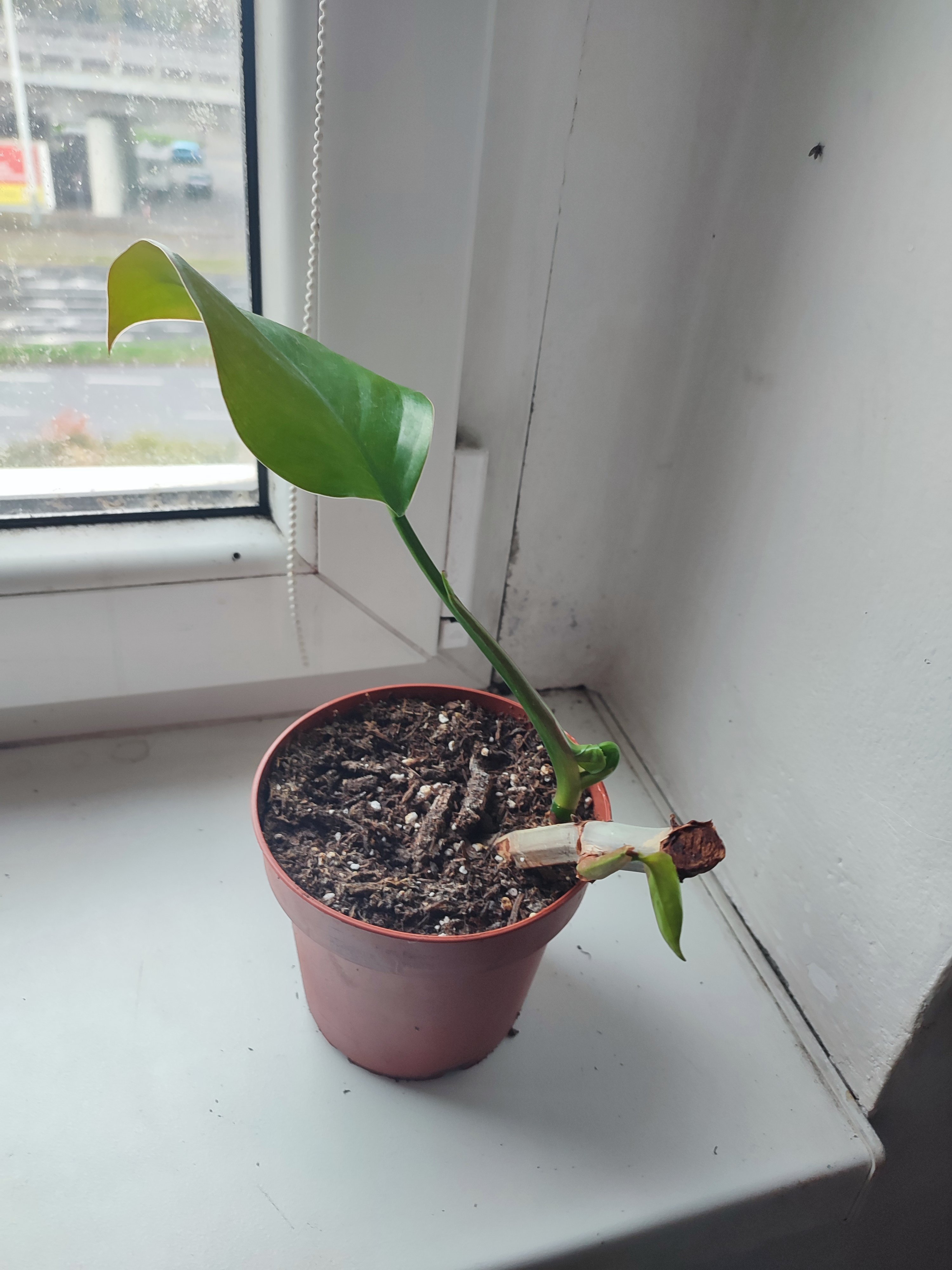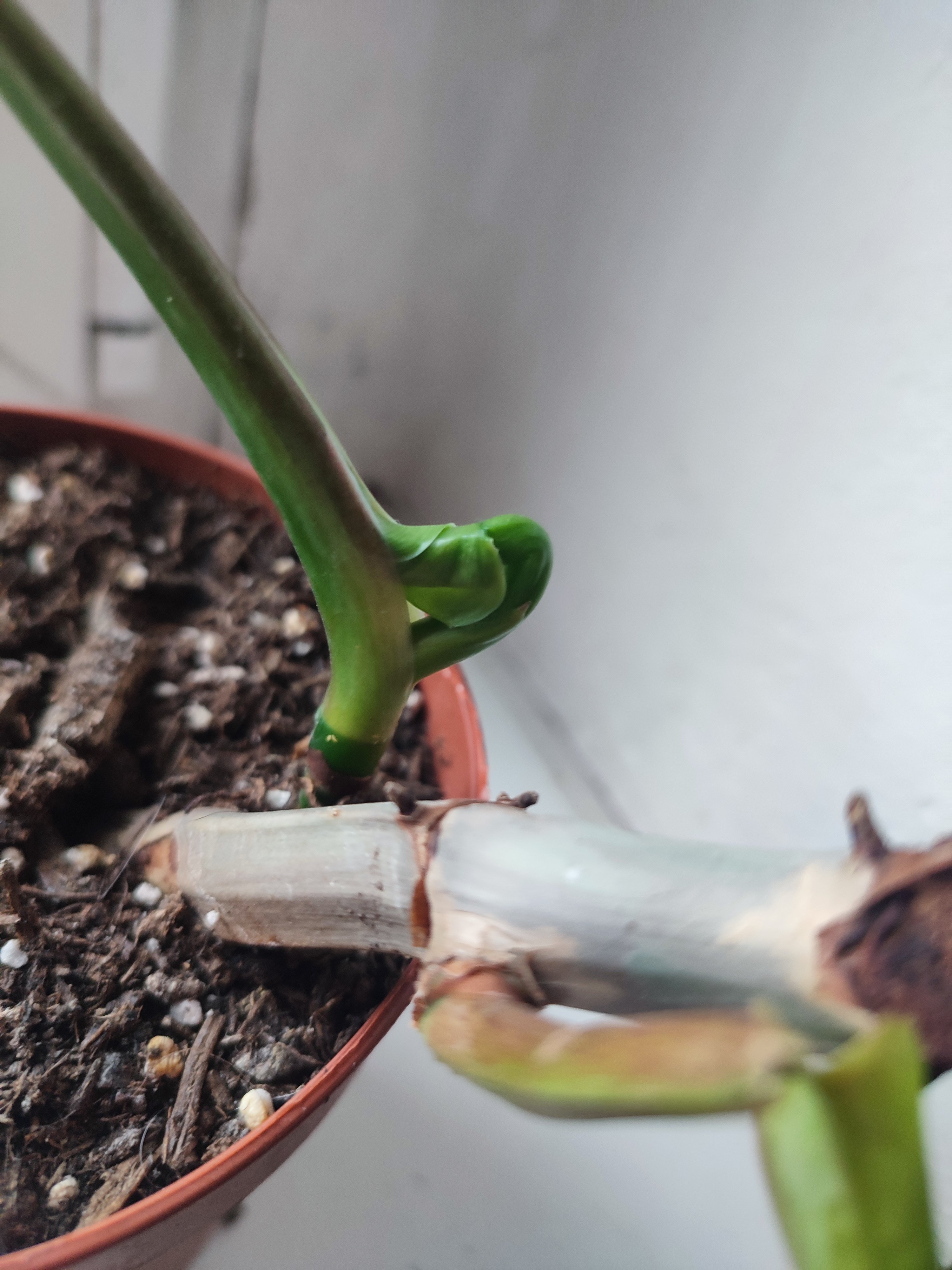 Plně zakořeněná rostlina v novém substrátu.