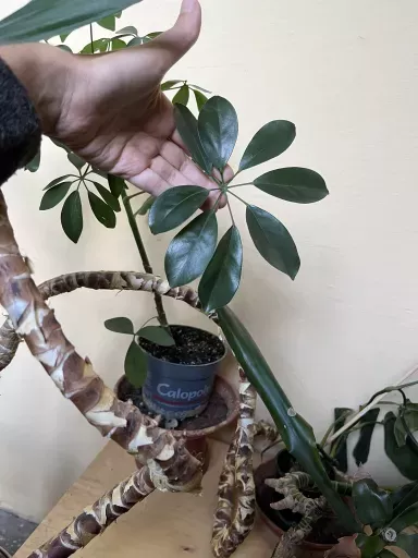 Schefflera arboricola - stálice mezi pokojovkami, nenáročná, zdravá a vzhledově atraktivní. Rostlinka je 2-3 roky zapěstovaná se zdravým růstem a kořenovým balem. Přesazená na jaře, vedena jako vysoký čistý kmínek. Zdravá, bez škůdců.