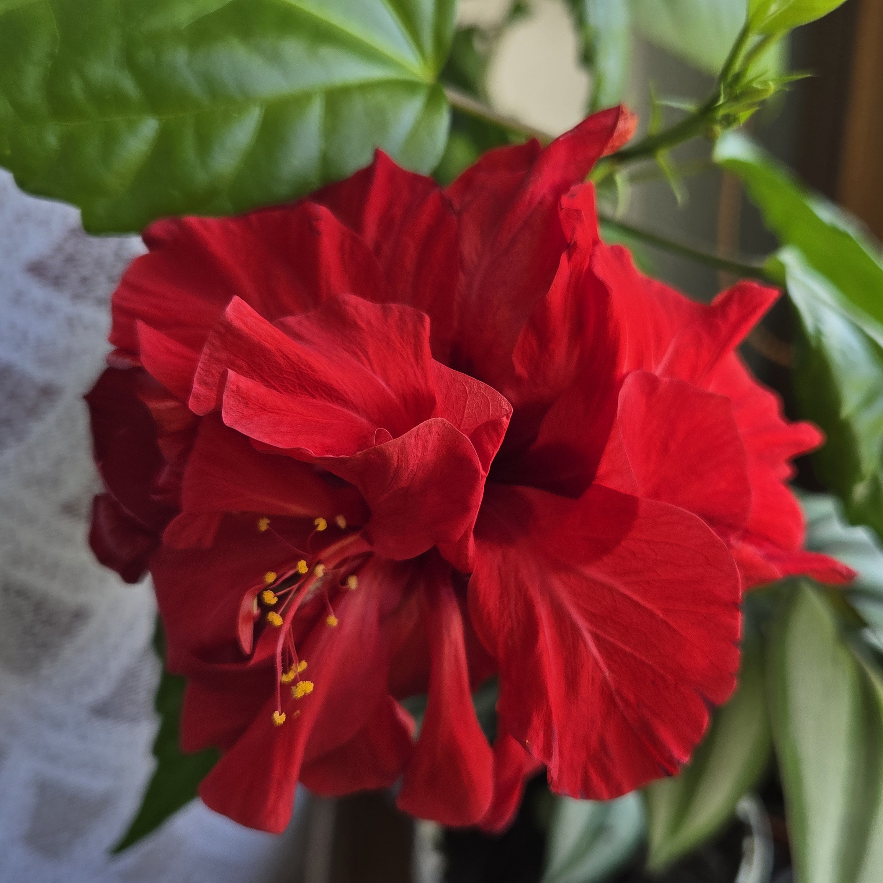 Ibišek červený plnokvětý, trsy v květníku