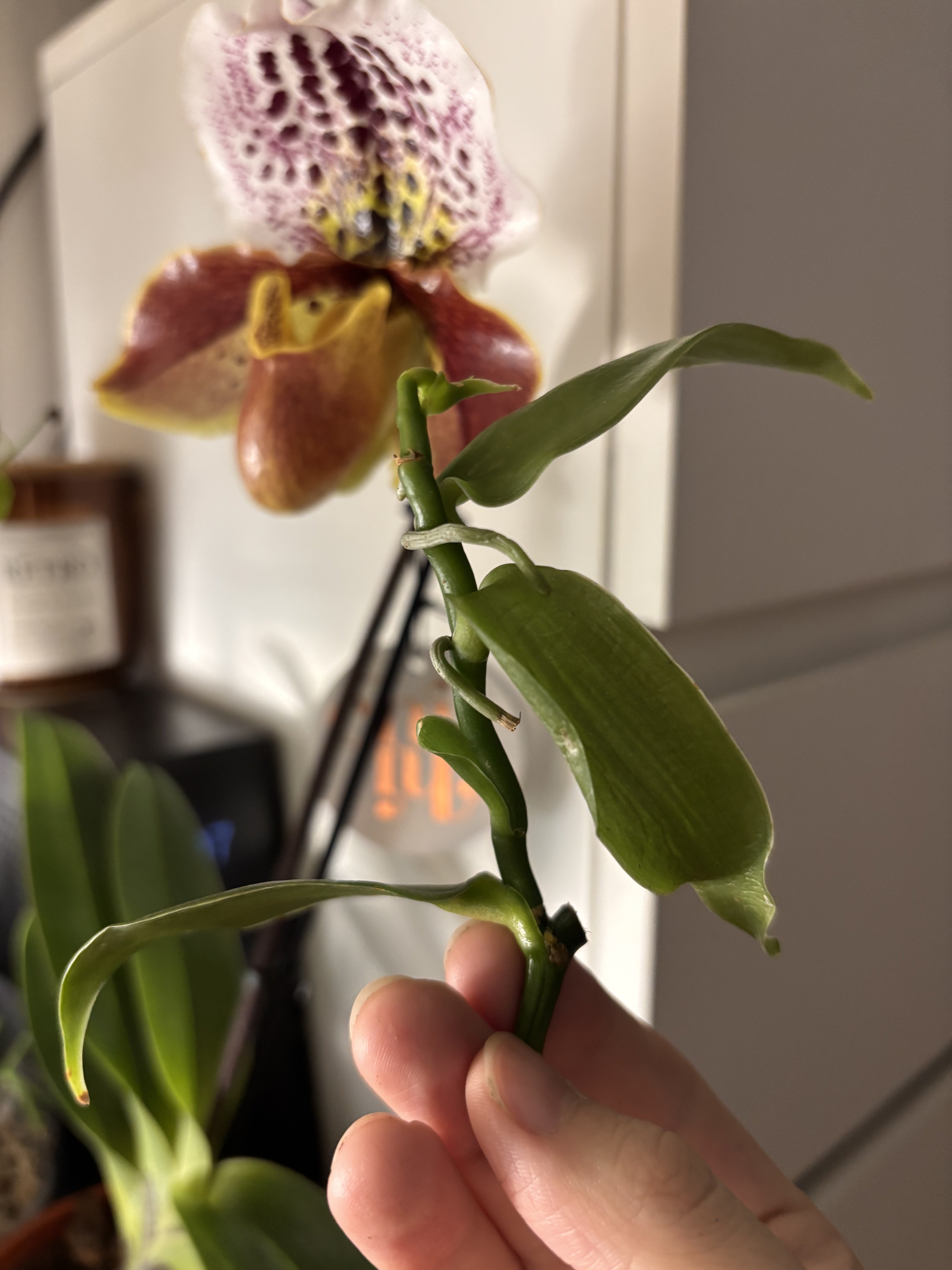 Jedná se o řízek vanilky, kdyby někdo nevěděl, jedná se o rostlinu z které si můžete vypěstovat vlastní vanilku😊, je ze zdravé rostlinky🪴 vrcholní řízek Pokuď se chcete domluvit více nebo chcete napsat tak mommaplantia na fb