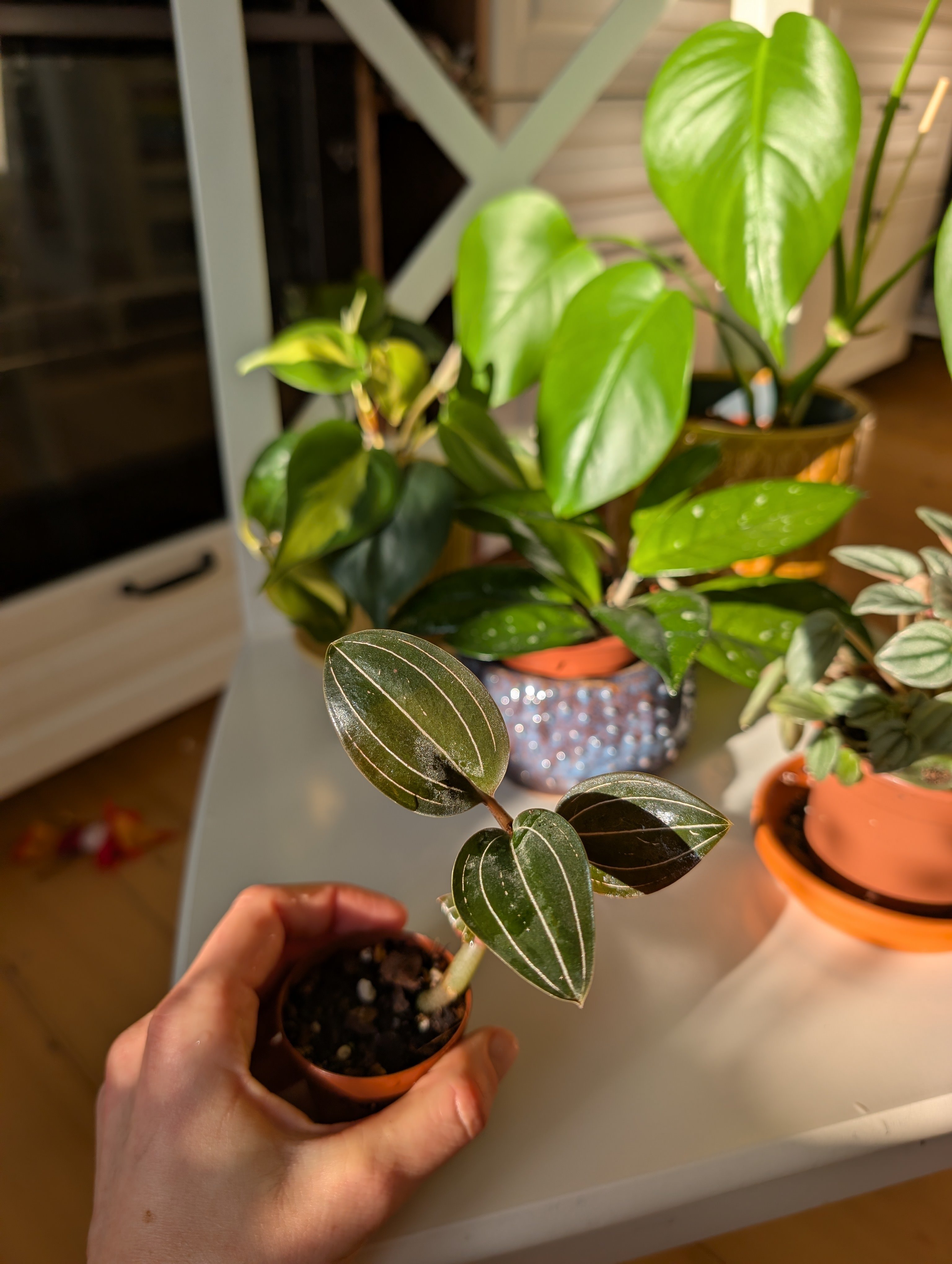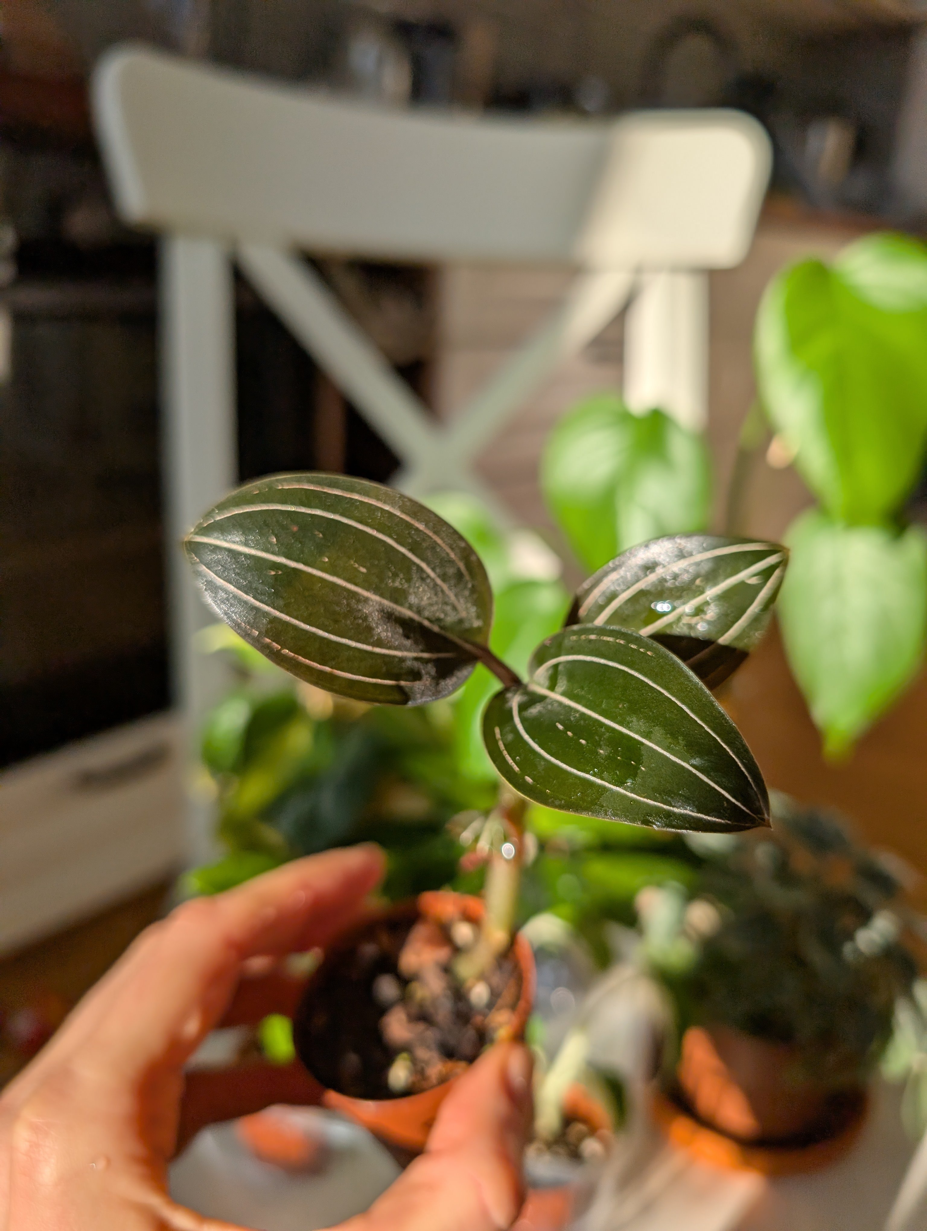 Ludisia discolor – krásná a zdravá „jewel orchid“ pěstovaná pro své sametové tmavě zelené listy s jemným růžovým žilkováním. Nenáročná na péči, vhodná do bytu, prospívá i při běžném pokojovém světle. Má ráda mírně vlhký substrát. Možné osobní předání nebo zaslání: Balíkovnou Zásilkovnou PPL případně mohu vystavit přes Vinted (poštovné pak vyjde levněji) V případě zájmu ráda pošlu aktuální fotografie. Foceno 24/2/2026