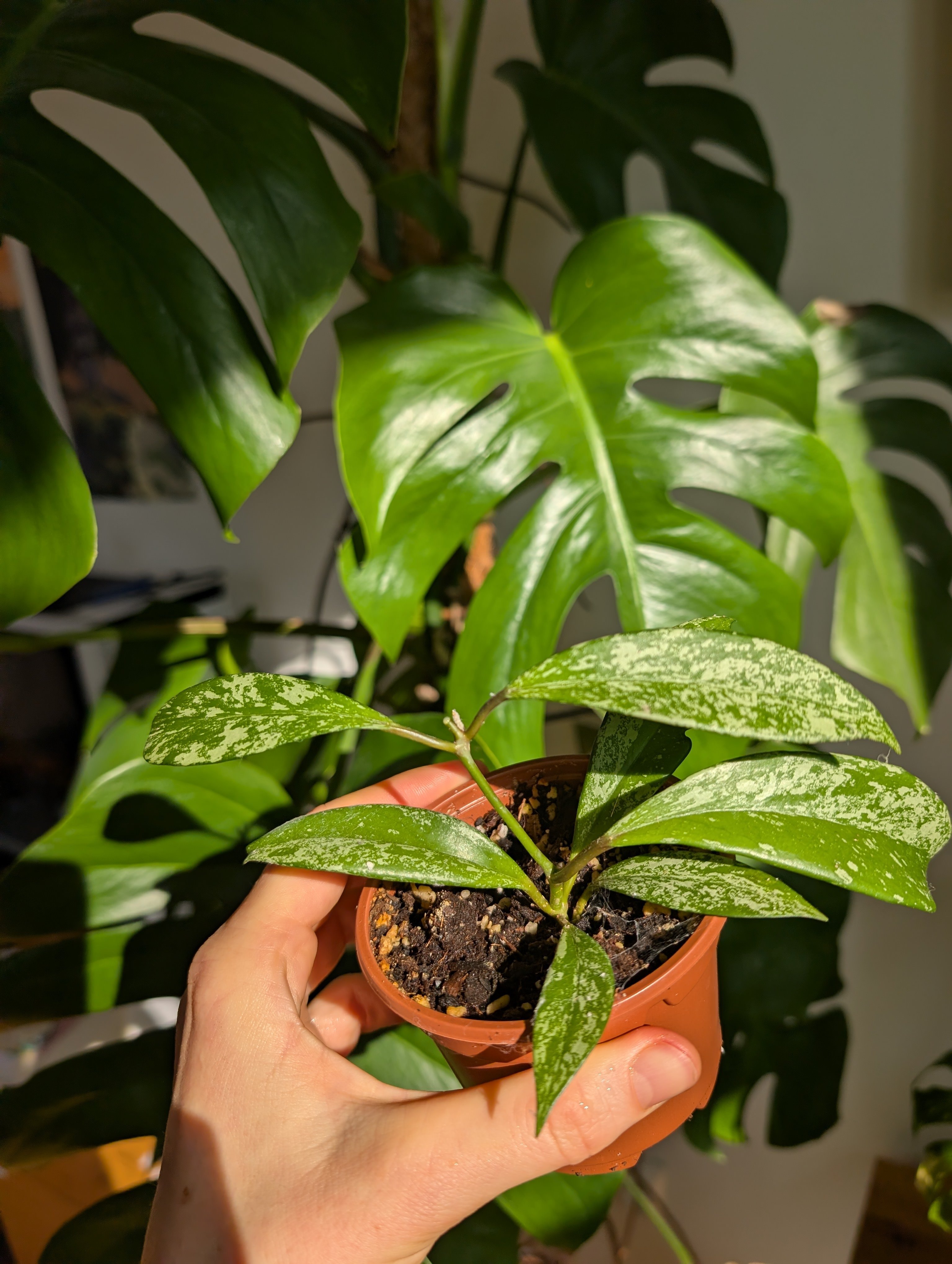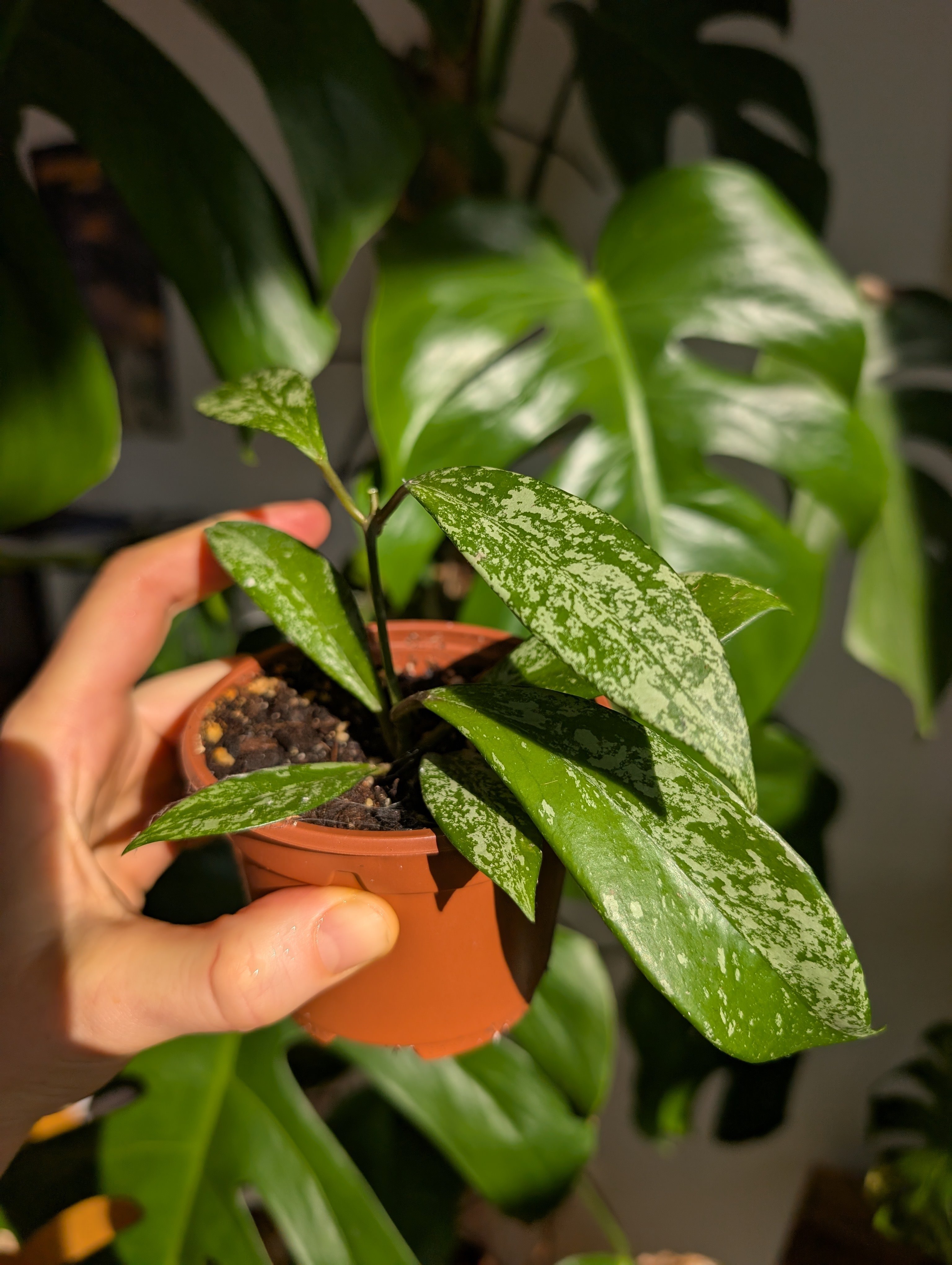 Hoya pubicalyx Splash – krásná a zdravá rostlinka s tmavě zelenými listy zdobenými stříbřitými skvrnami. Spodní část rostliny, má čerstvě střižený vrchol. Nenáročná na péči. Má ráda světlé stanoviště bez přímého ostrého slunce a střídmou zálivku. Možné osobní předání nebo zaslání: Balíkovnou Zásilkovnou PPL případně mohu vystavit přes Vinted (poštovné pak vyjde levněji) V případě zájmu ráda pošlu aktuální fotografie. Foceno 26/2/2026