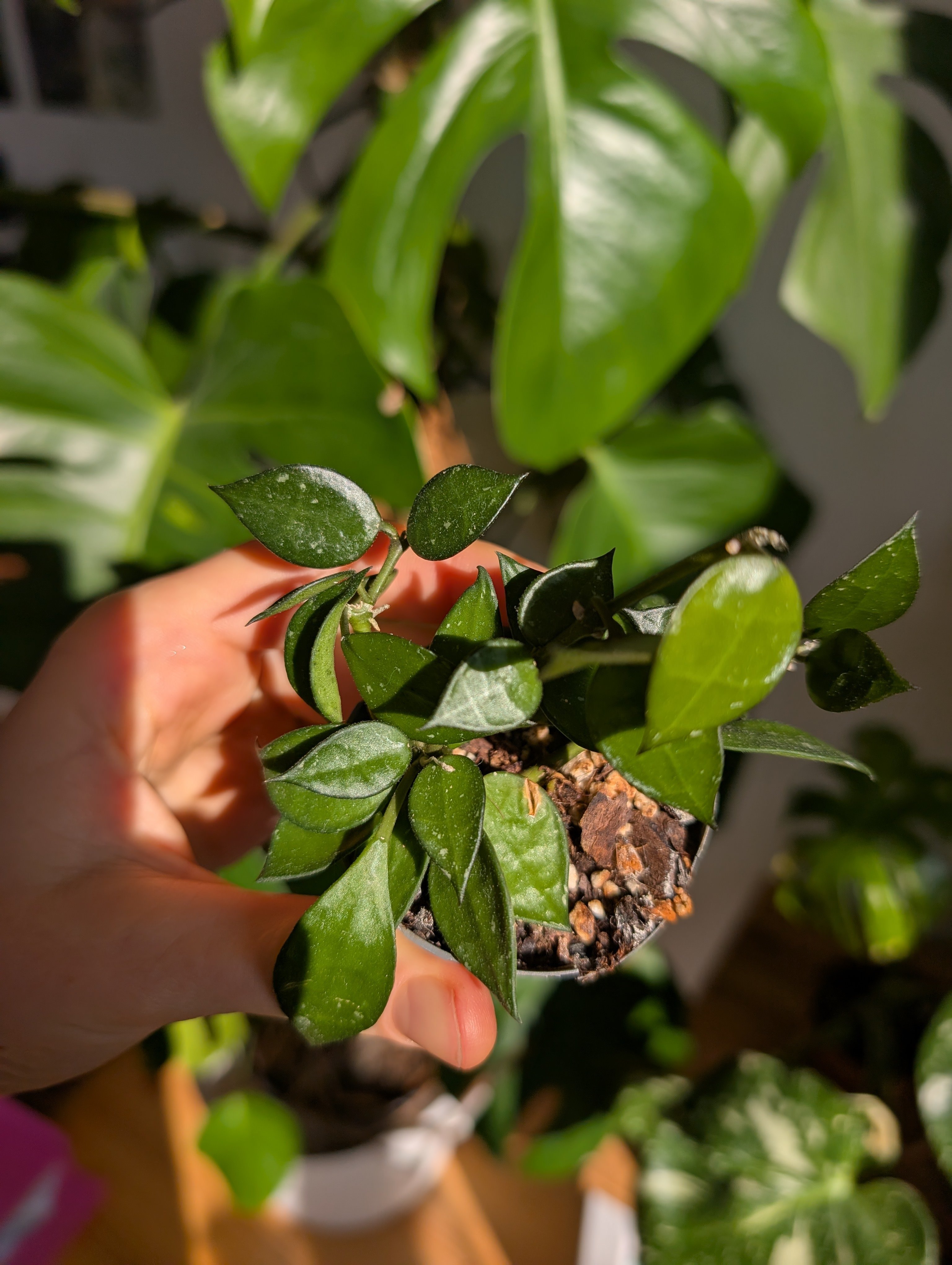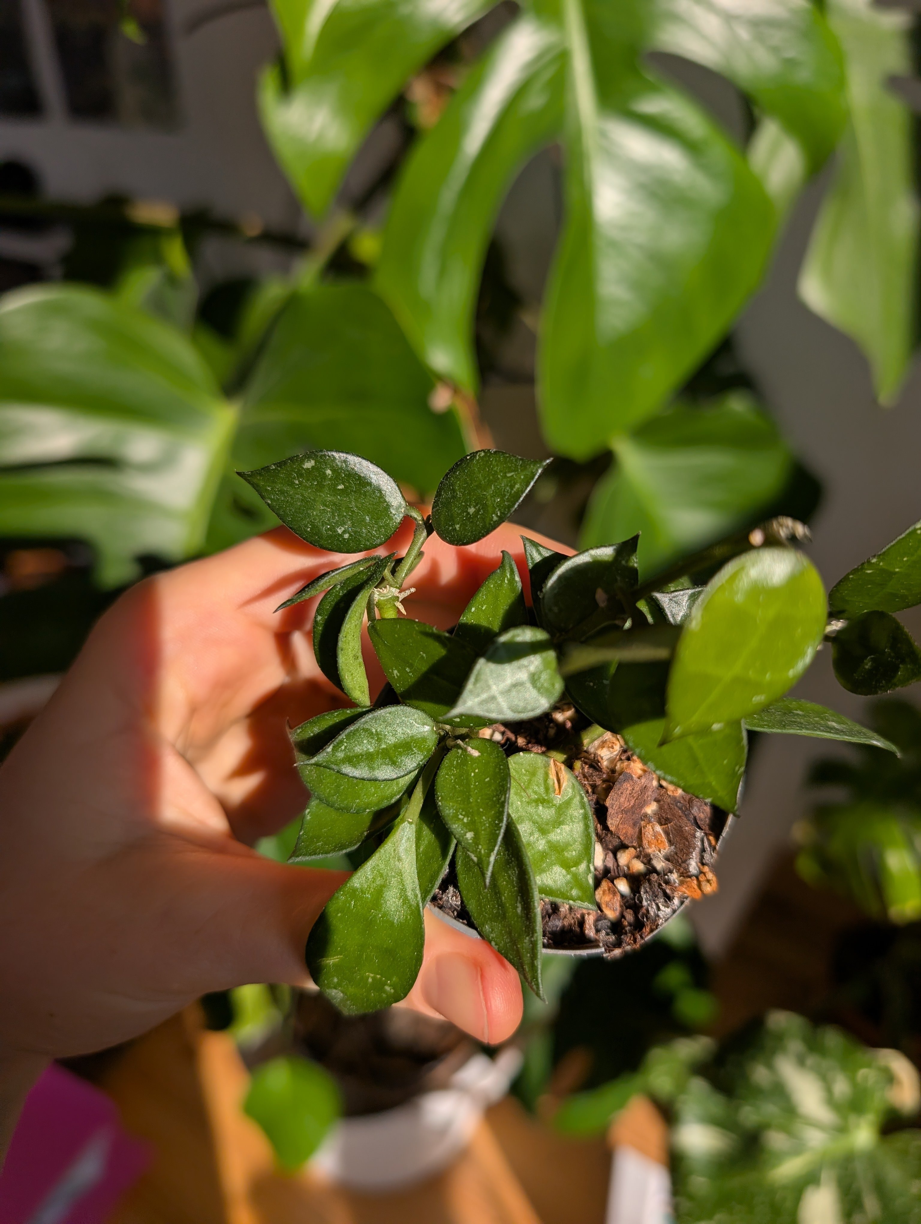 Hoya lacunosa – krásná voskovka s drobnějšími zelenými listy. Nenáročná na péči, může růst jako převislá i popínavá. Možné osobní předání nebo zaslání: Balíkovnou Zásilkovnou PPL případně mohu vystavit přes Vinted (poštovné pak vyjde levněji) V případě zájmu ráda pošlu aktuální fotografie. Foceno 26/2/2026