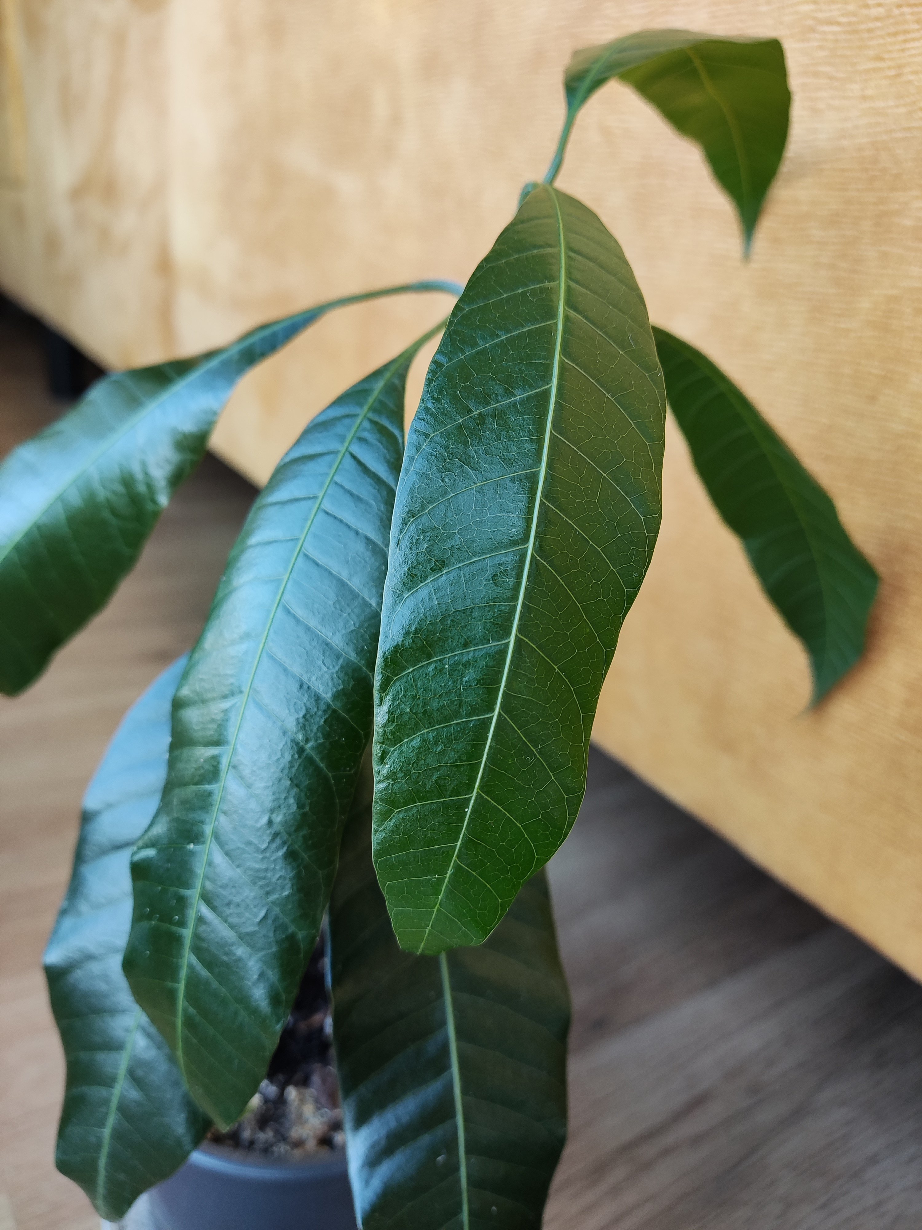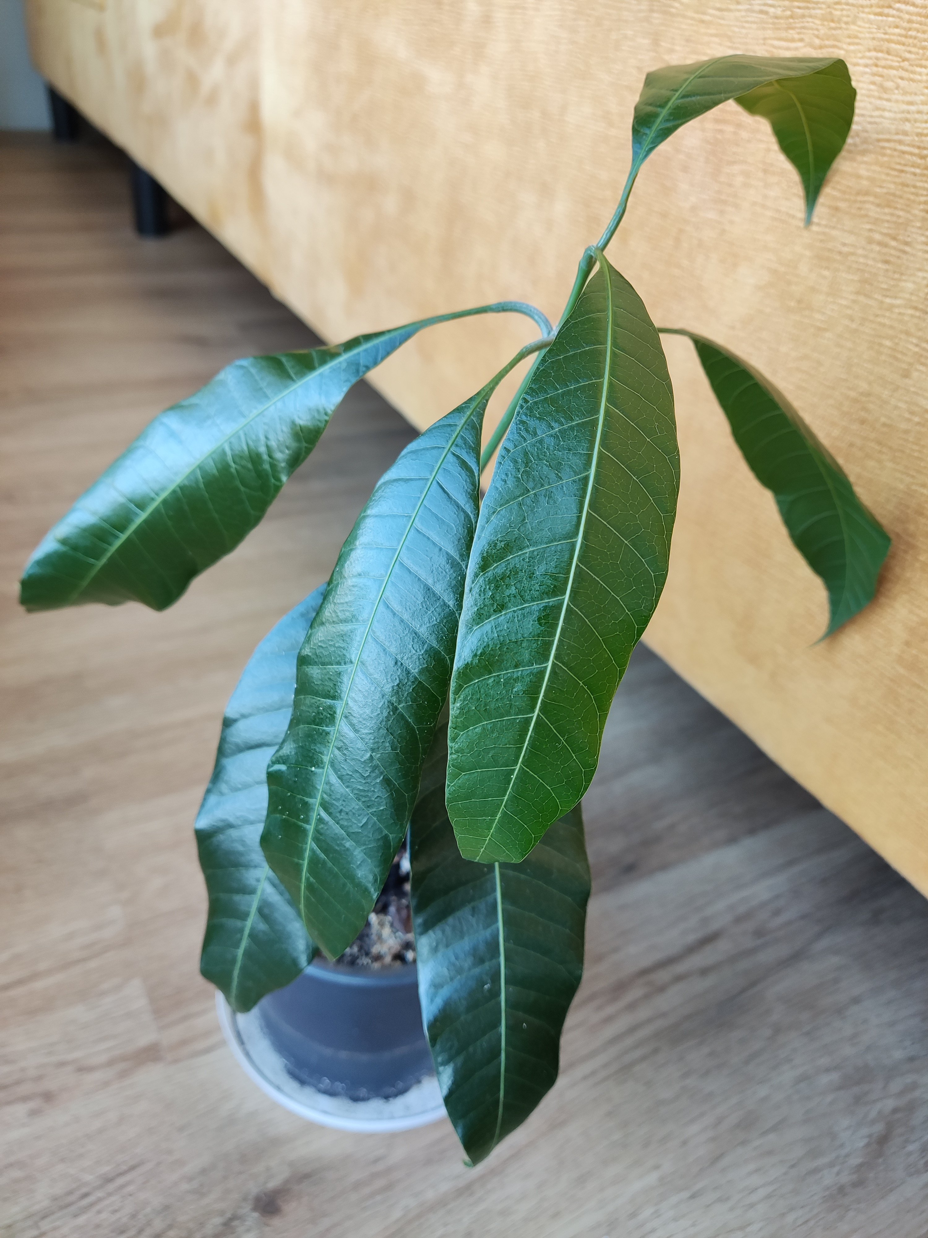Mangovník (hruškovec) mladá rostlinka.