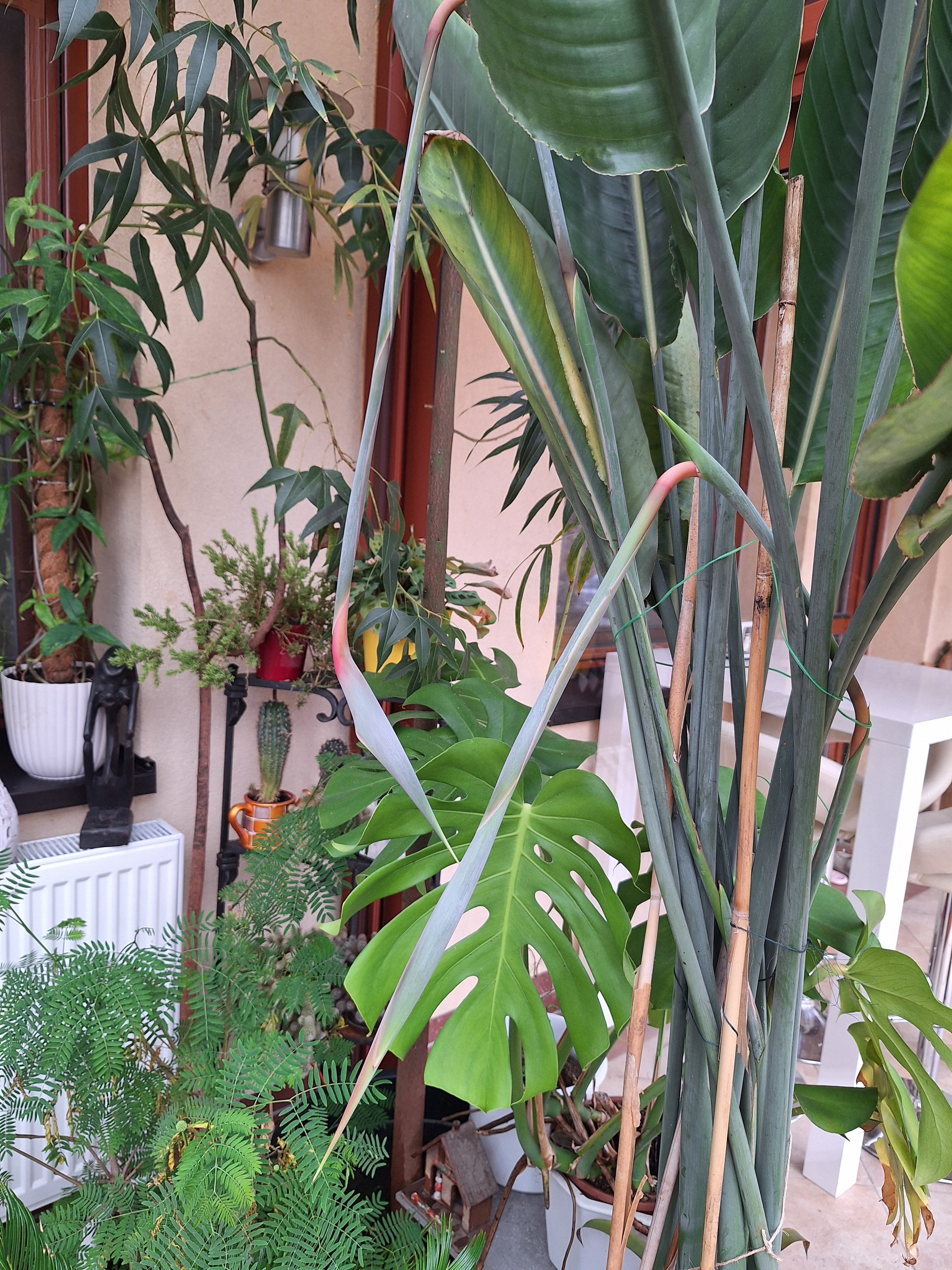 Z důvodu stěhování prodám 20letou strelícii královskou. V kvetináči spolubydlí dvě rostliny, nyní obě nakvetlé. Fotky květů jsou z podzimu 2025. Výška je přes 2m, stálé místo má v zimní zahradě, s teplotou přes zimu +10 °C, kvete 1-2 ročně, vždy obě rostliny najednou.