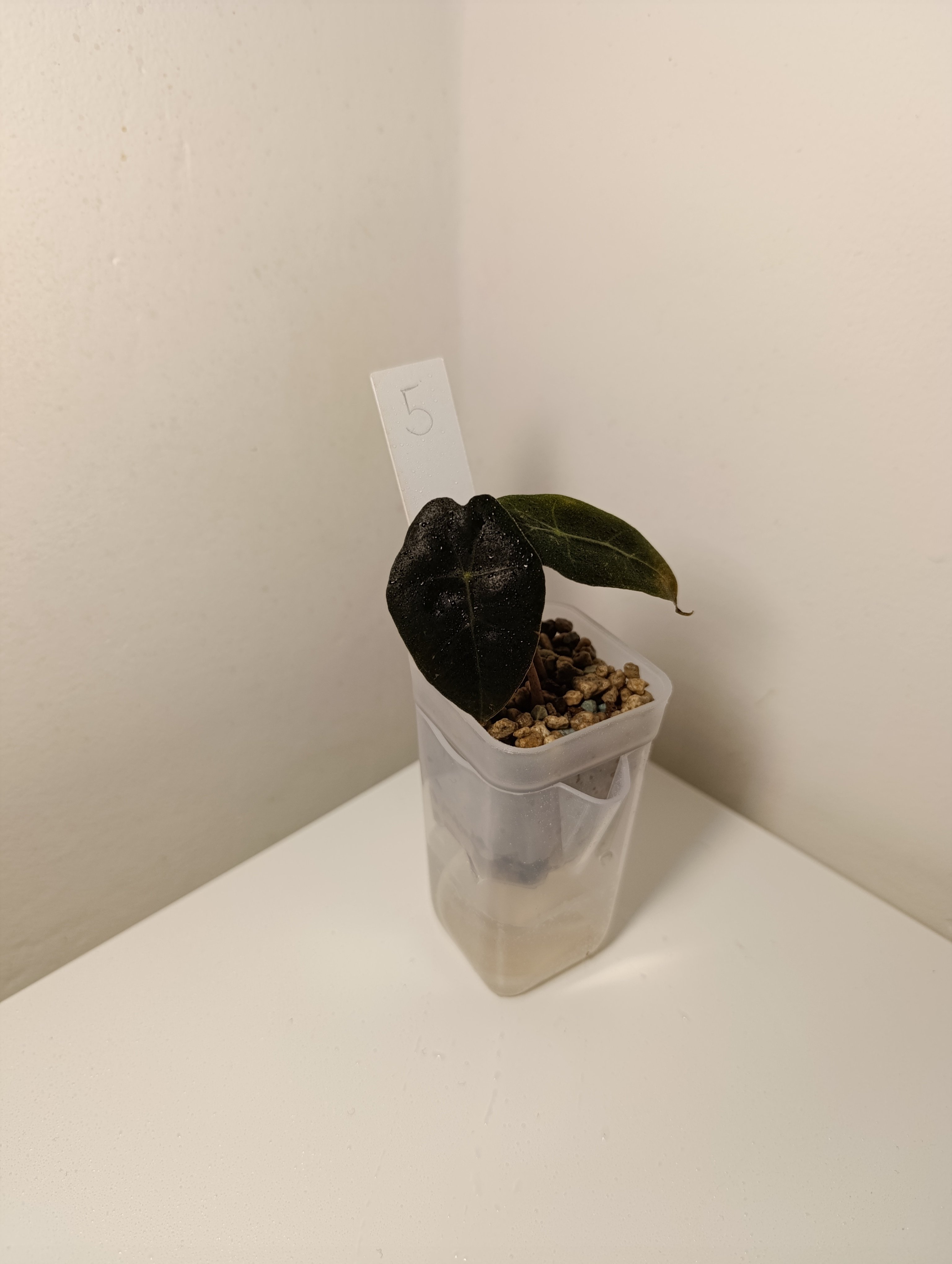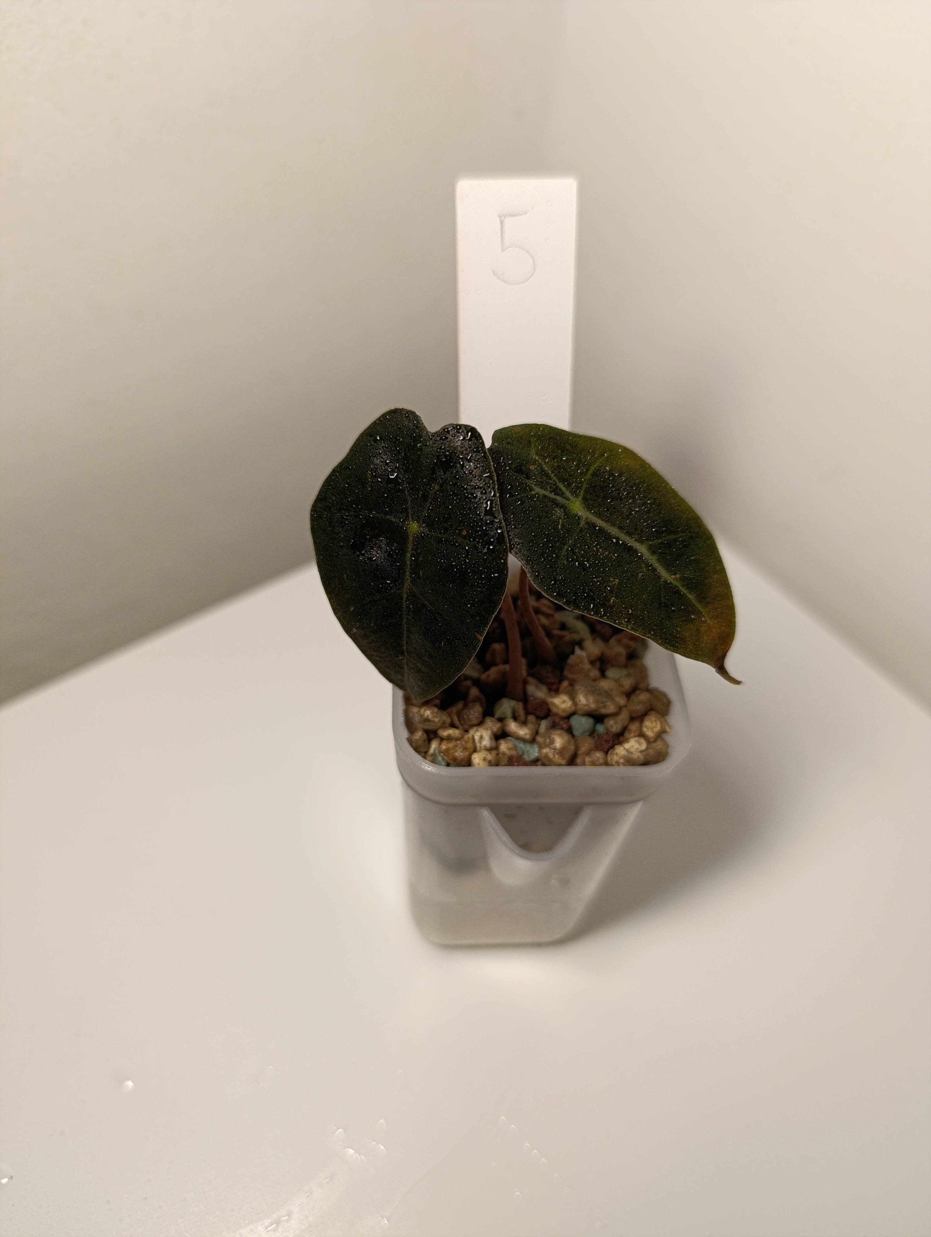 Alocasia Polly v minerálním substrátu + květináč