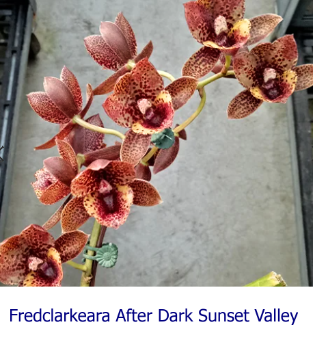 Fredclarkeara After Dark Sunset Valley FCC/AOS - květuschopná (květy skvrnité kaštanovo červené barvy, vonící). Cena 450,- Kč. (Přiložené foto s květy je pouze ilustrační). Rostlina je hybrid a pěstuje se jako orchideje Catasetum, návod na pěstování mohu poslat