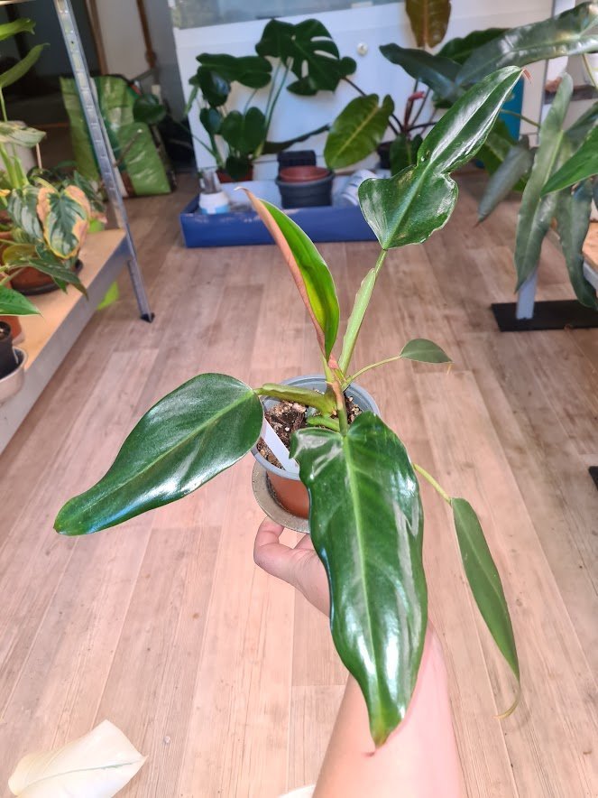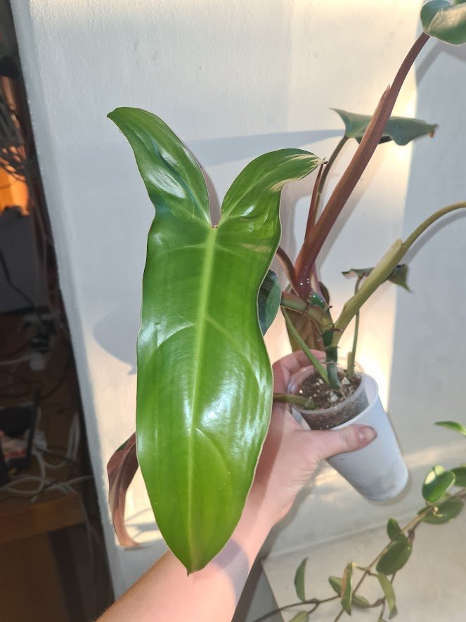 Jedná se o rostlinku, rostoucí na spodku mateřské rostliny. Vděčný, nenáročný druh ušatého philodendronu. Druhé foto vrchol matky.
