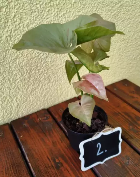 Nabízím k prodeji rozrostlou rostlinu syngonia Pink Spot o několika listech. Je to krásná rarita s krémově zbarvenými listy a růžovými skvrnami, nebo tečkami a časem, jak rostlina dospívá, růžová místa tmavnou. Je to popínavá rostlina, nenáročná na pěstování, časem ocení kokosovou tyč, po které bude moci šplhat.